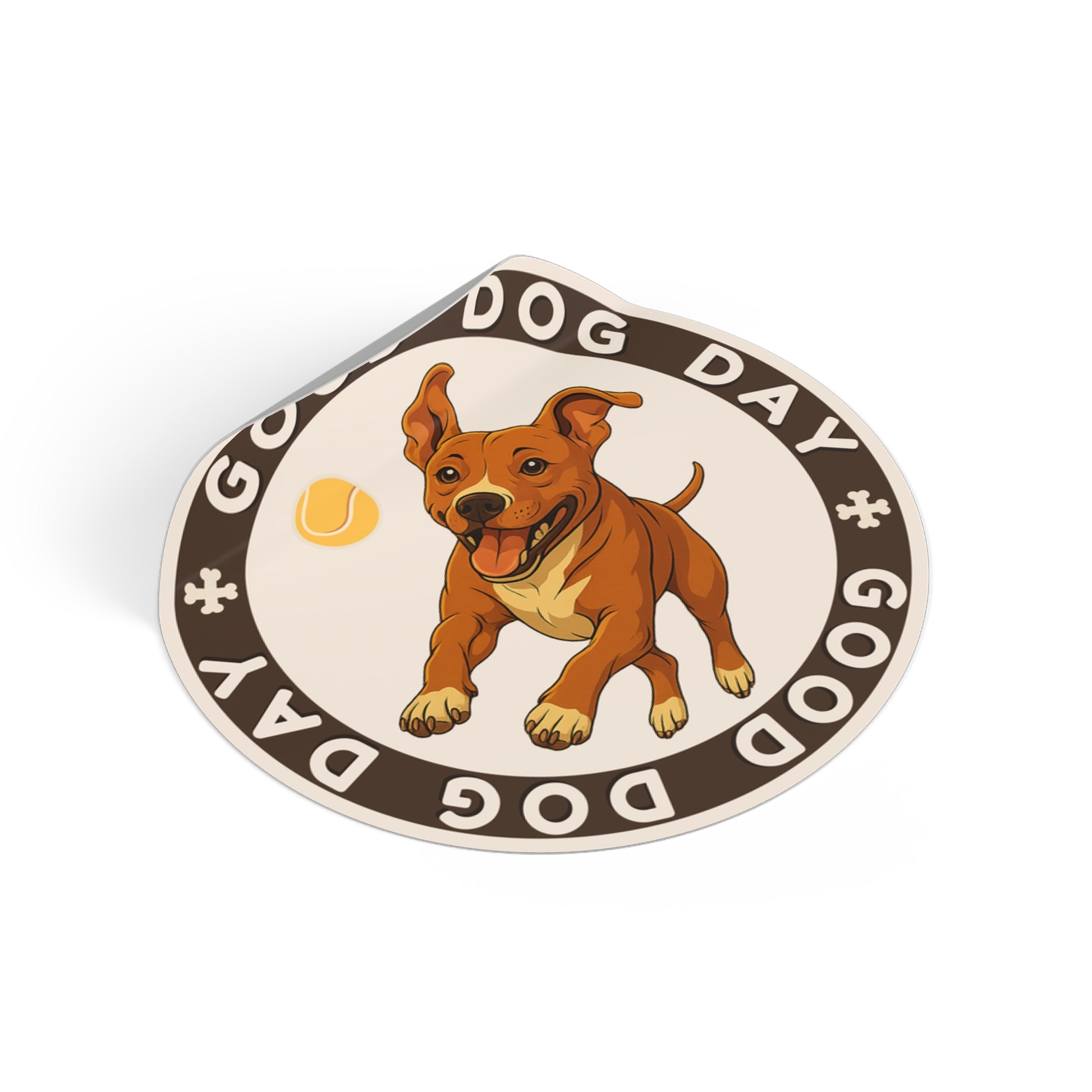 The Good Dog Day Pit Bull 2"x2" Sticker – Coffee & Cream captures pure energy in motion. This bold, beaming pup is all muscle and joy, paws lifting smooth for the next stride and eyes locked on the ball. The circle design wraps it in Good Dog Day pride, ready to stick wherever the vibes run wild.