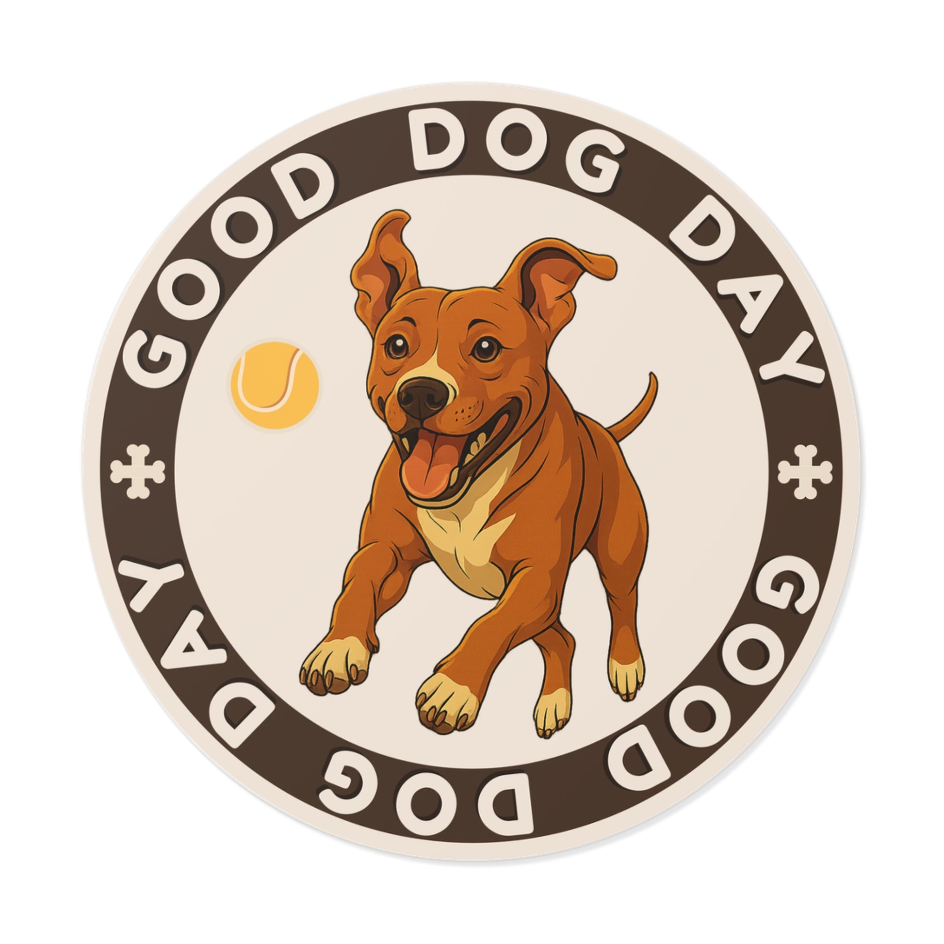 The Good Dog Day Pit Bull 3"x3" Sticker – Coffee & Cream locks in the joy mid-stride. This athletic sweetheart is all bounce and power, framed in the signature GOOD DOG DAY ring and racing toward the next moment of play. Built to last and printed with rich, vibrant detail, it’s ready for wherever you stick your style.