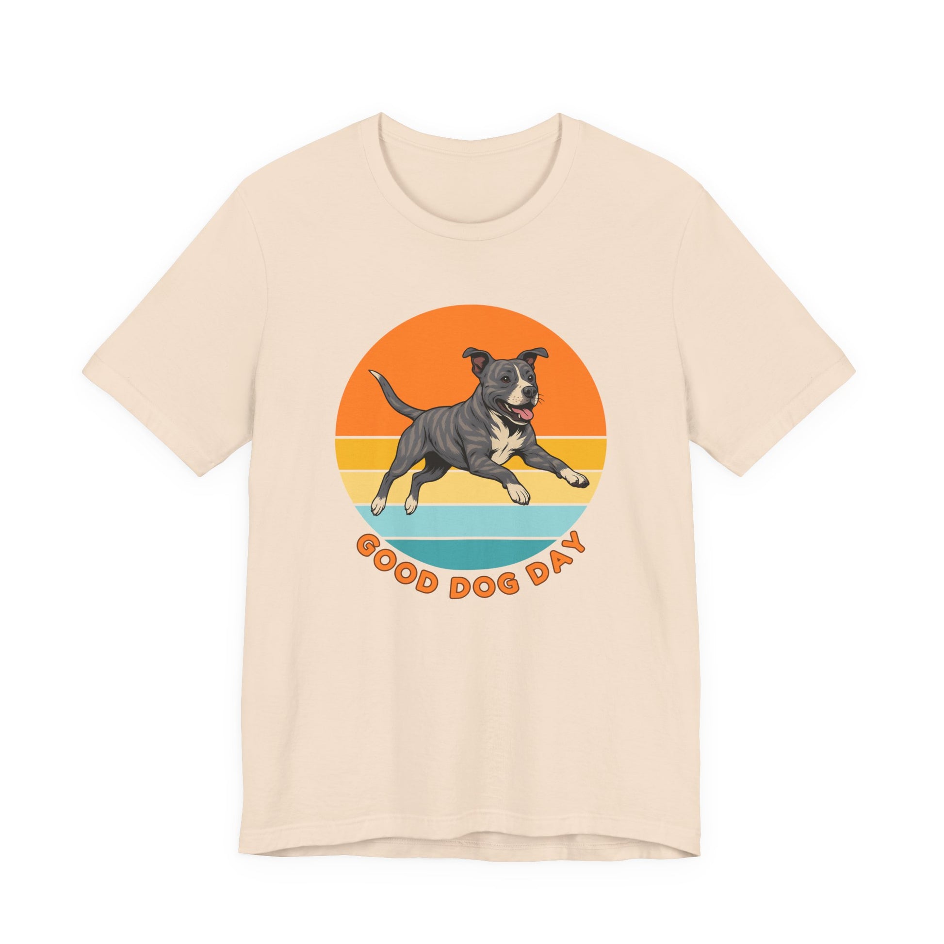 Good Dog Day Pit Bull Shirt – Blue Smoke & Cream – Retro Sunset